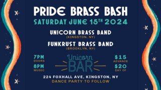 Come get dancey to some brass music at Unicorn Bar as part of your Kingston Pride weekend! We've got Funkrust Brass Band in from NYC headlining the night, and the brand spankin' new house band for the bar, Unicorn Brass Band, will get the night started. Dance party to follow. Open to all, allies welcome!