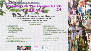 Paintings In The Garden (PITG), an annual art show and fundraiser produced by Alicia Aberdeen Art LLC, now in its sixth installment, is committed to creating spaces for artists of the Caribbean diaspora and beyond, to shine and represent the many layers of our creative culture. This year the event will showcase fine art and performing arts from the Caribbean arts community in a one-day extravaganza hosted by and at the Consulate General of The Republic of Trinidad & Tobago NYC, followed by a full exhibit for one week.