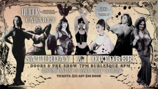 Lady Slipper and Ginger Maraschino invite you to the Queer Cabaret, a bi-monthly burlesque show at Unicorn Bar in Kingston, NY. Join us Saturday October 26th for a sexy and sinister evening of side-show, vocal performance, and bewitching burlesque acts to make your skin crawl with pleasure. Enter the costume contest and win enchanted prizes! The bar opens at 5pm for drinks and Halloween haunts. Stick around after the show for spooky activities and a killer dance party!