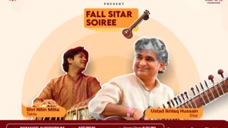 Join us for an enchanting evening at the Fall Sitar Soiree, featuring the renowned Ustad Ikhlaq Hussain on sitar, accompanied by the talented Nitin Mitta on tabla. Ustad Ikhlaq Hussain, celebrated for his mastery of classical Indian music, will mesmerize with his intricate melodies, while Nitin Mitta's dynamic tabla rhythms provide the perfect complement. Curated by Sunny Thakkar, this event promises a captivating experience for all music lovers.