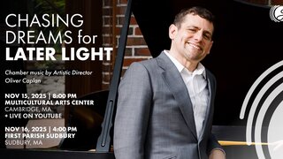 Chasing Dreams for Later Light follows the unfolding of a composer’s creative journey. Each work on the program—composed by Juventas Artistic Director Oliver Caplan—is connected, some emerging from musical fragments once set aside, others rooted in shared musical or collaborative origins. This program brings them together for the first time, offering a window into Oliver’s distinctive voice as a contemporary composer.