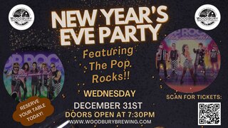It's an 80s rocking eve at The Woodbury Brewing Company on December 31st with The Pop Rocks performing from 9:00pm - 12:30am. All reservations are available as early as 7:30PM when we open for the evening event.