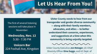 Ulster County needs to hear from our transgender and gender diverse community — along with their family members, advocates, and allies — to better understand their concerns, experiences, and suggestions at a time when this community is being unjustly targeted.